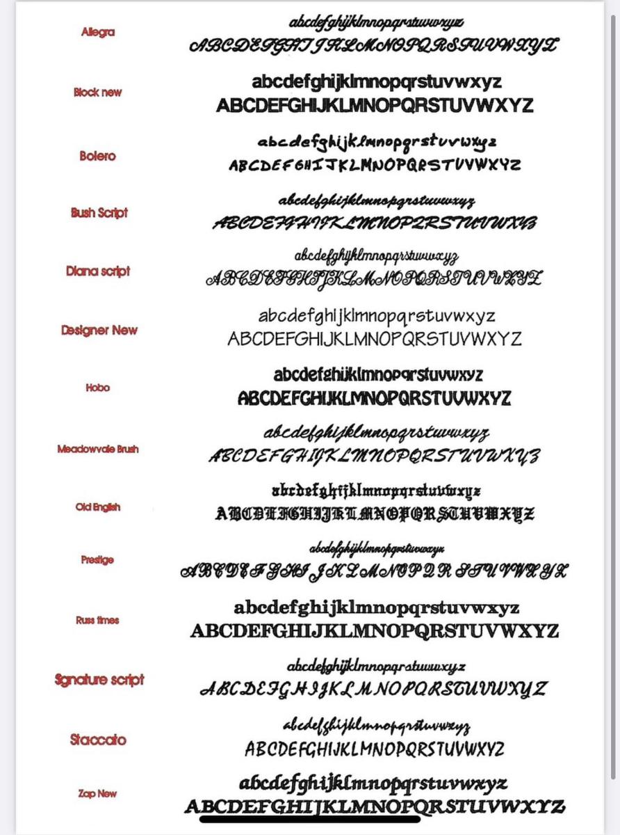 1. Envoyez-nous votre visuel par mail à info@seridis.fr, en précisant le support à broder (tee-shirt, casquette, serviette…).👉 Si vous souhaitez uniquement du texte, choisissez une police disponible dans notre logiciel :